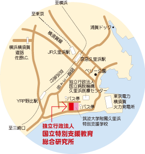 バス2番のりばより「久里浜医療センター」行で約15分,国立特別支援教育総合研究所下車すぐ