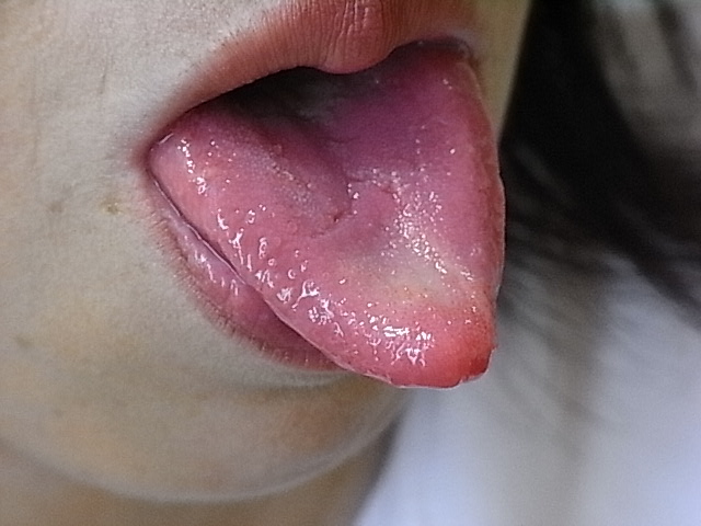 舌の力を抜いて平らな舌を作ることを目標とします。