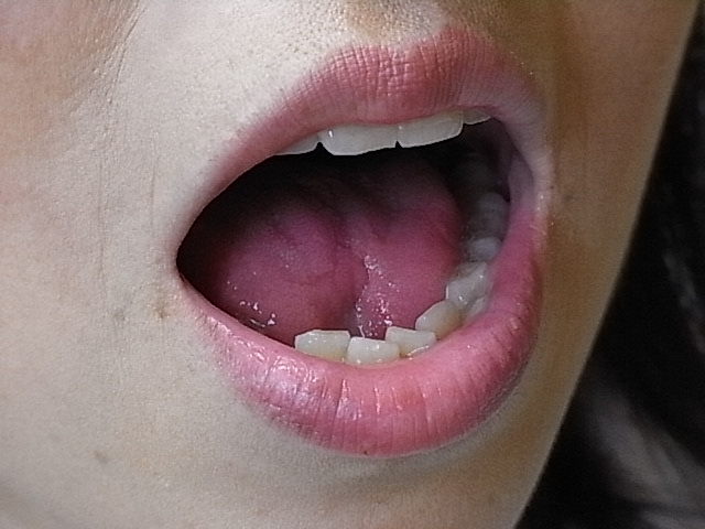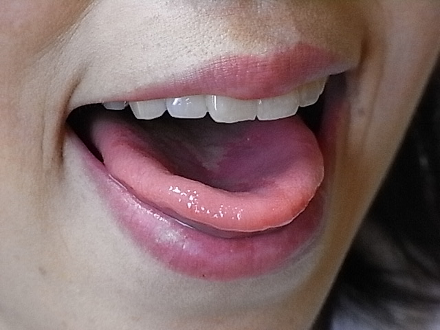 舌先を下前歯の裏に当てたり下口唇と下前歯の間に差し挟んでいたりしても